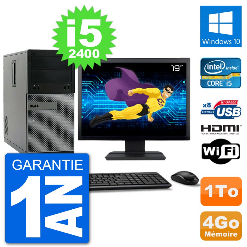 PC Dell 3010 MT - Intel Core i5-2400 3.1 Ghz (6 Mo) - 4 Go DDR3 - Disque Dur 3,5" 1 To - Graveur DVD - Clef Wifi USB - Windows 10 - Livré avec Ecran 19" + clavier + souris (Marques et modèles variables) - Garantie 1 an.