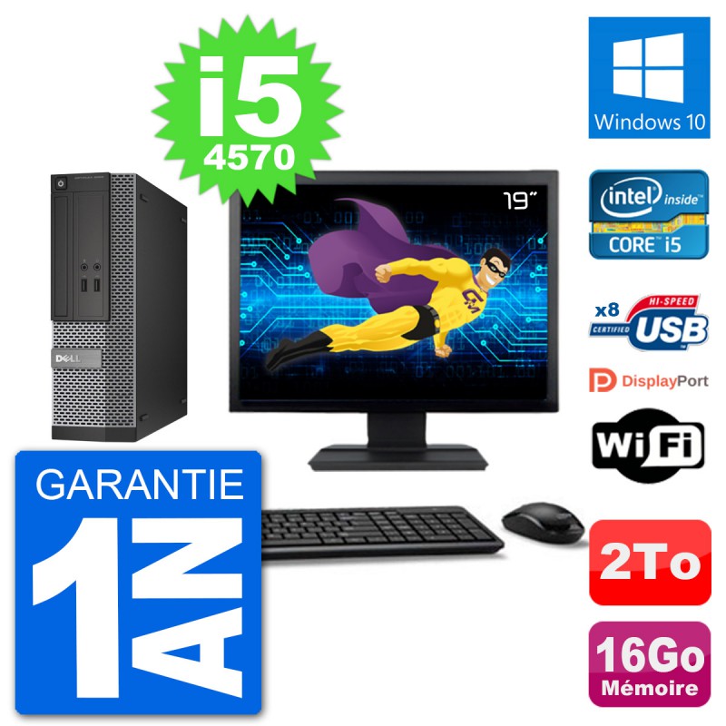 PC Dell 3020 SFF - Intel Core i5-4570 3.2 Ghz (6 Mo) - 16 Go DDR3 - Disque Dur 3,5" 2 To - Graveur DVD - Clef Wifi USB - Windows 10 - Livré avec Ecran 19" + clavier + souris (Marques et modèles variables) - Garantie 1 an.