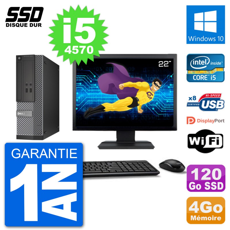 PC Dell Optiplex 3020 SFF Ecran 22" i5-4570 RAM 4Go SSD 120Go Windows 10 Wifi