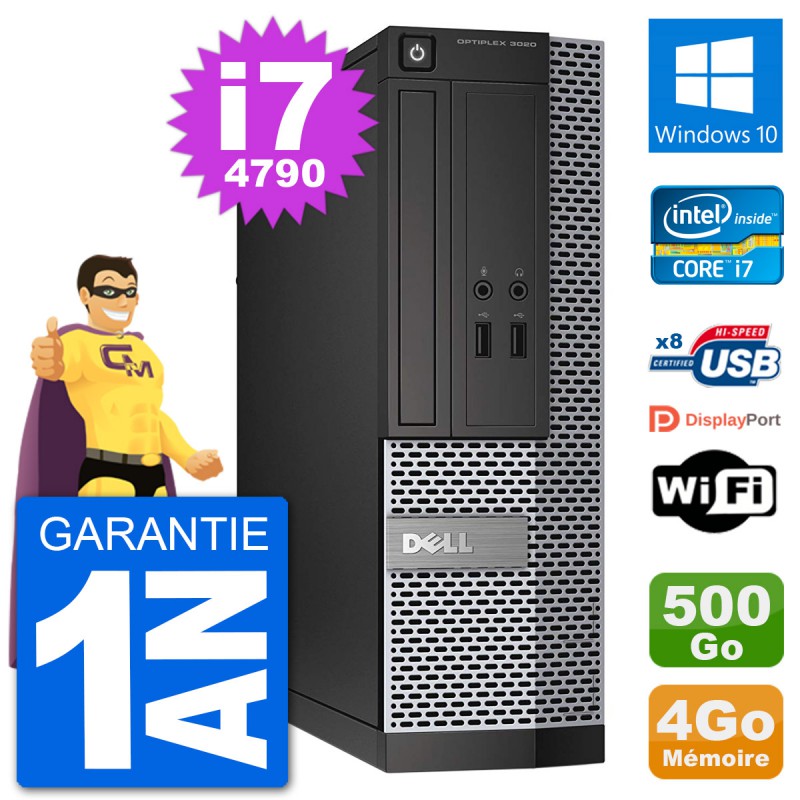PC Dell OptiPlex 3020 SFF - Intel Core i7-4790 3.6 Ghz (8 Mo) - 4 Go DDR3 - Disque Dur 3,5" 500 Go - Graveur DVD - Clef Wifi USB - Windows 10 - Garantie 1 an.