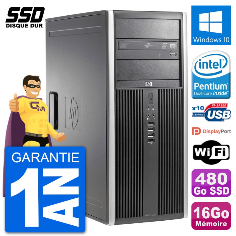 PC Tour HP 8200 Elite - Intel Pentium Dual-Core G630 2.7 Ghz (3 Mo) - 16 Go DDR3 - Disque Dur SSD 480 Go - Graveur DVD - Clef Wifi USB - Windows 10 - Garantie 1 an.