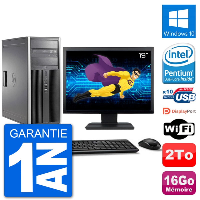PC Tour HP 8200 Elite - Intel Pentium Dual-Core G630 2.7 Ghz (3 Mo) - 16 Go DDR3 - Disque Dur 3,5" 2 To - Graveur DVD - Clef Wifi USB - Windows 10 - Livré avec Ecran 19" + clavier + souris (Marques et modèles variables) - Garantie 1 an.