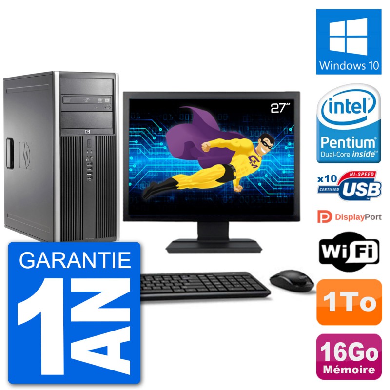 PC Tour HP 8200 Elite - Intel Pentium Dual-Core G630 2.7 Ghz (3 Mo) - 16 Go DDR3 - Disque Dur 3,5" 1 To - Graveur DVD - Clef Wifi USB - Windows 10 - Livré avec Ecran 27" + clavier + souris (Marques et modèles variables) - Garantie 1 an.
