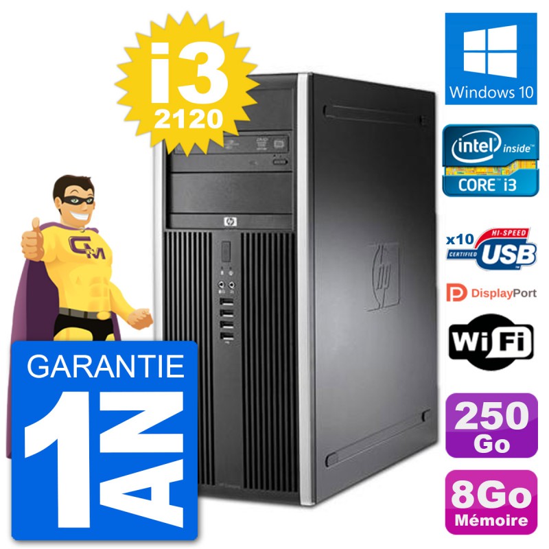 PC Tour HP 8200 Elite - Intel Core i3-2120 3.3 Ghz (3 Mo) - 8 Go DDR3 - Disque Dur 3,5" 250 Go - Graveur DVD - Clef Wifi USB - Windows 10 - Garantie 1 an.