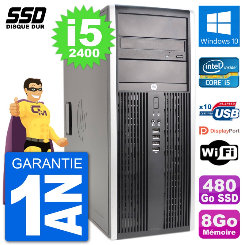 PC Tour HP 8200 Elite - Intel Core i5-2400 3.1 Ghz (6 Mo) - 8 Go DDR3 - Disque Dur SSD 480 Go - Graveur DVD - Clef Wifi USB - Windows 10 - Garantie 1 an.