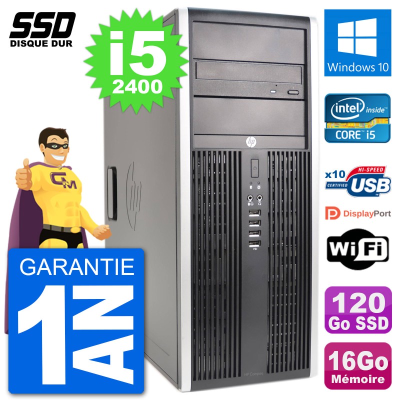 PC Tour HP 8200 Elite - Intel Core i5-2400 3.1 Ghz (6 Mo) - 16 Go DDR3 - Disque Dur SSD 120 Go - Graveur DVD - Clef Wifi USB - Windows 10 - Garantie 1 an.