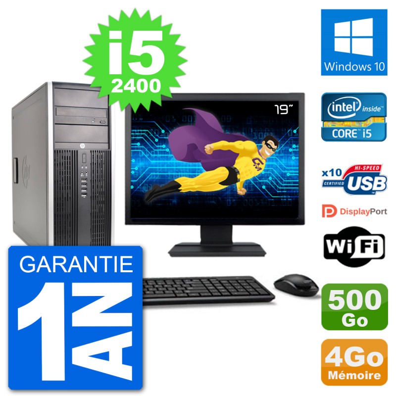 PC Tour HP 8200 Elite - Intel Core i5-2400 3.1 Ghz (6 Mo) - 4 Go DDR3 - Disque Dur 3,5" 500 Go - Graveur DVD - Clef Wifi USB - Windows 10 - Livré avec Ecran 19" + clavier + souris (Marques et modèles variables) - Garantie 1 an.