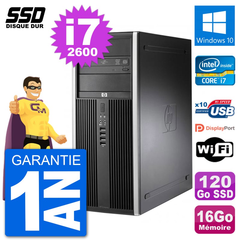 PC Tour HP 8200 Elite - Intel Core i7-2600 3.4 Ghz (8 Mo) - 16 Go DDR3 - Disque Dur SSD 120 Go - Graveur DVD - Clef Wifi USB - Windows 10 - Garantie 1 an.