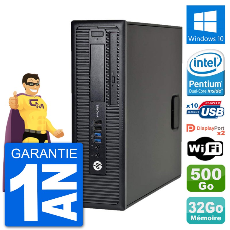 PC HP EliteDesk 800 G1 SFF - Intel Pentium G3220 3.0 Ghz (3 Mo) - 32 Go DDR3 - Disque Dur 3,5" 500 Go - Graveur DVD - Clef Wifi USB - Windows 10 - Garantie 1 an.