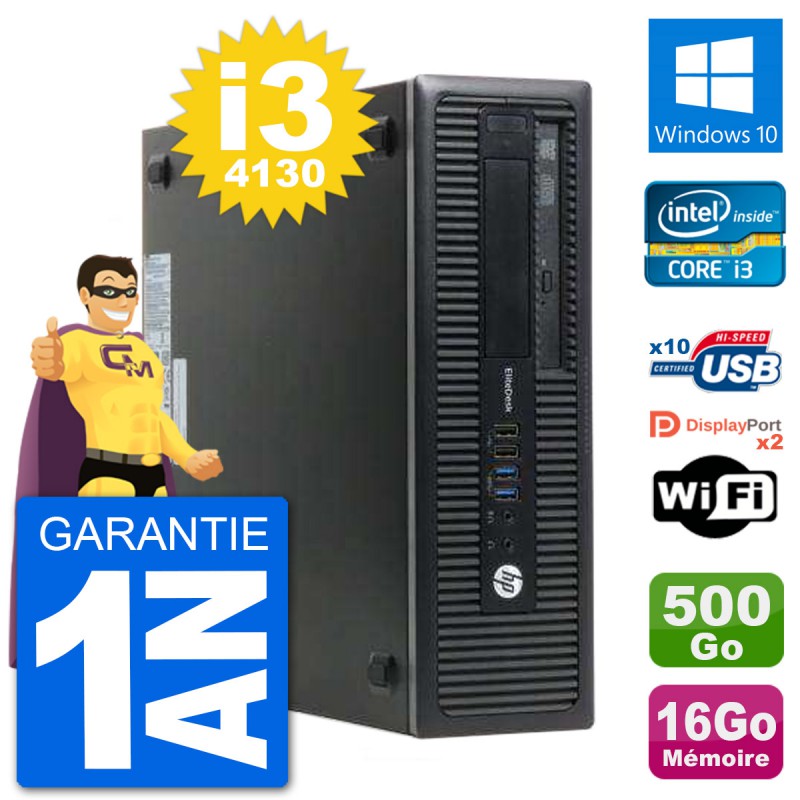 PC HP EliteDesk 800 G1 SFF - Intel Core i3-4130 3.4 Ghz (3 Mo) - 16 Go DDR3 - Disque Dur 3,5" 500 Go - Graveur DVD - Clef Wifi USB - Windows 10 - Garantie 1 an.