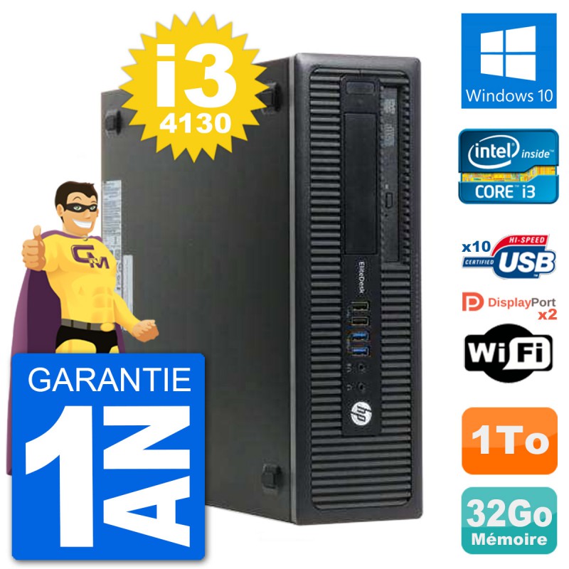 PC HP EliteDesk 800 G1 Core i3-4130 RAM 32Go Disque Dur 1To Windows 10 Wifi