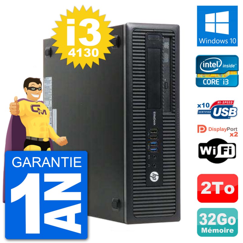 PC HP EliteDesk 800 G1 SFF - Intel Core i3-4130 3.4 Ghz (3 Mo) - 32 Go DDR3 - Disque Dur 3,5" 2 To - Graveur DVD - Clef Wifi USB - Windows 10 - Garantie 1 an.