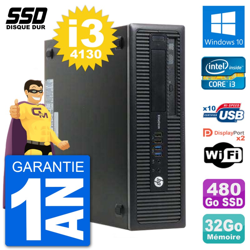 PC HP EliteDesk 800 G1 SFF - Intel Core i3-4130 3.4 Ghz (3 Mo) - 32 Go DDR3 - Disque Dur SSD 480 Go - Graveur DVD - Clef Wifi USB - Windows 10 - Garantie 1 an.