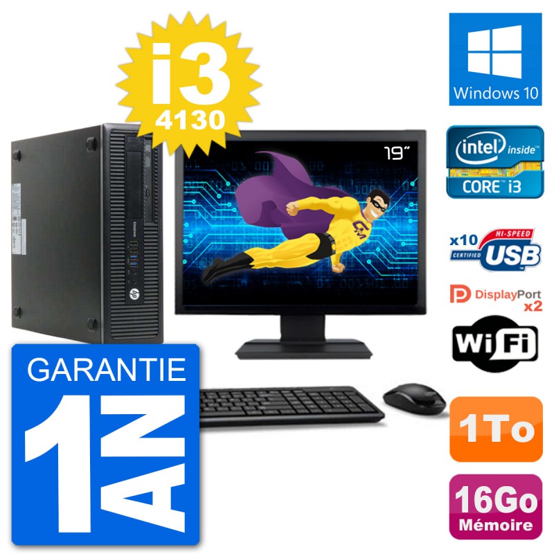 PC HP EliteDesk 800 G1 SFF - Intel Core i3-4130 3.4 Ghz (3 Mo) - 16 Go DDR3 - Disque Dur 3,5" 1 To - Graveur DVD - Clef Wifi USB - Windows 10 - Livré avec Ecran 19" + clavier + souris (Marques et modèles variables) - Garantie 1 an.