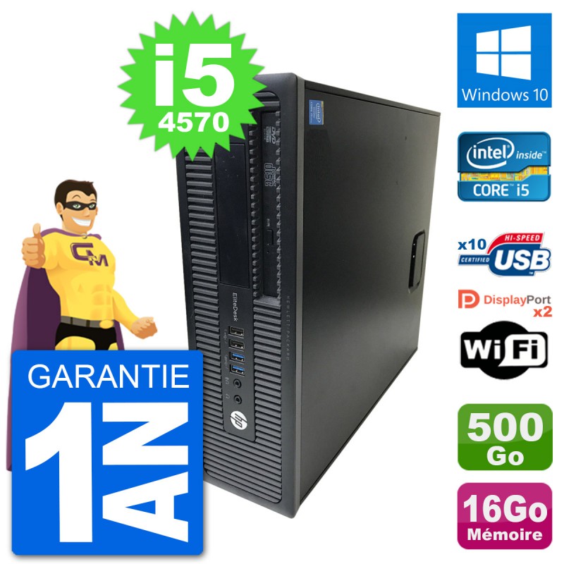 PC HP EliteDesk 800 G1 Core i5-4570 RAM 16Go Disque Dur 500Go Windows 10 Wifi