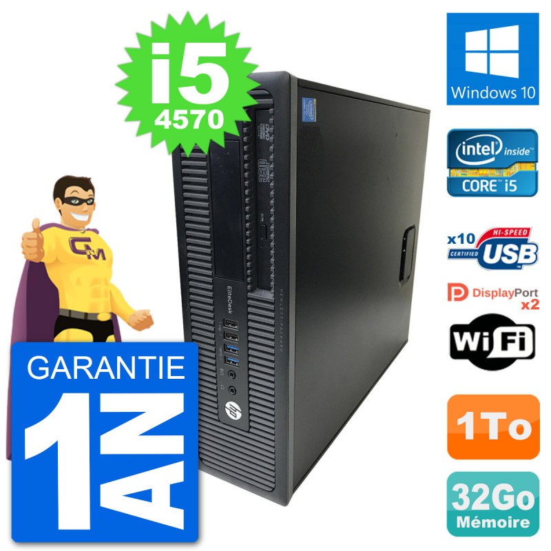 PC HP EliteDesk 800 G1 SFF - Intel Core i5-4570 3.2 Ghz (6 Mo) - 32 Go DDR3 - Disque Dur 3,5" 1 To - Graveur DVD - Clef Wifi USB - Windows 10 - Garantie 1 an.