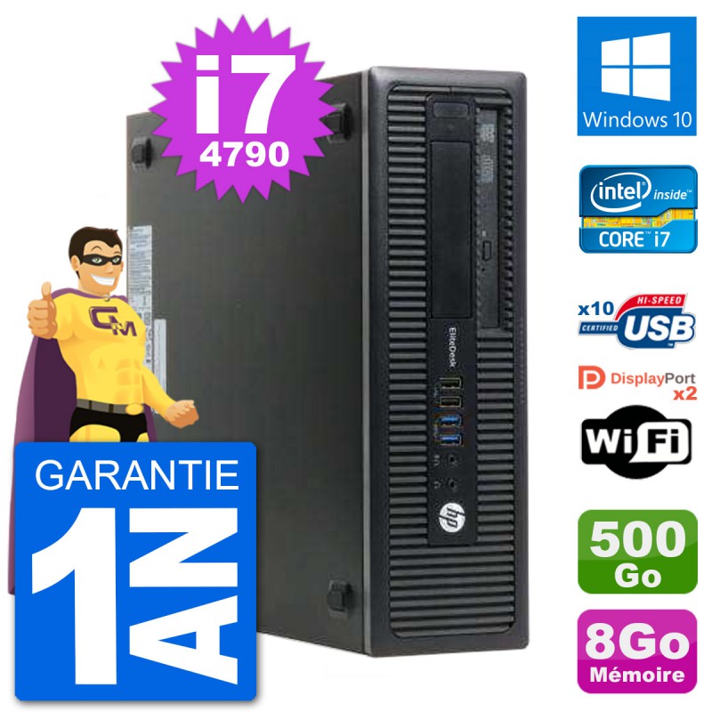 PC HP EliteDesk 800 G1 SFF - Intel Core i7-4790 3.6 Ghz (8 Mo) - 8 Go DDR3 - Disque Dur 3,5" 500 Go - Graveur DVD - Clef Wifi USB - Windows 10 - Garantie 1 an.