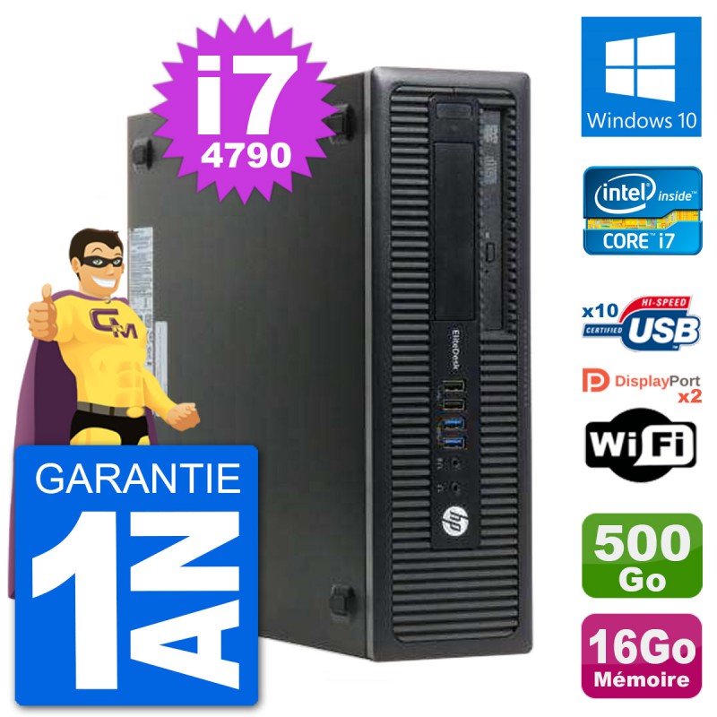 PC HP EliteDesk 800 G1 SFF - Intel Core i7-4790 3.6 Ghz (8 Mo) - 16 Go DDR3 - Disque Dur 3,5" 500 Go - Graveur DVD - Clef Wifi USB - Windows 10 - Garantie 1 an.