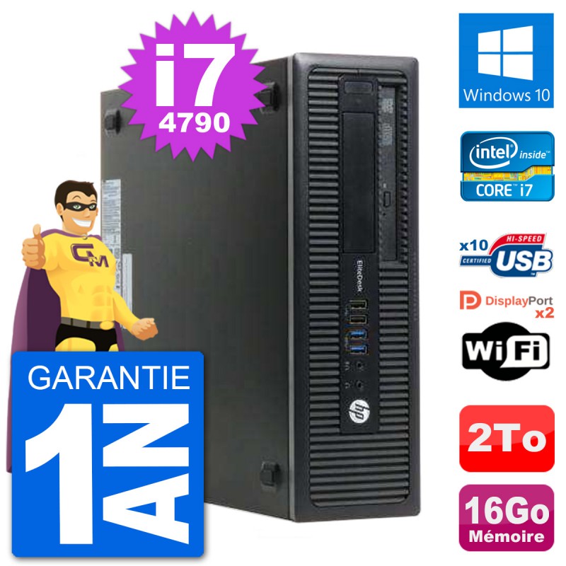 PC HP EliteDesk 800 G1 SFF - Intel Core i7-4790 3.6 Ghz (8 Mo) - 16 Go DDR3 - Disque Dur 3,5" 2 To - Graveur DVD - Clef Wifi USB - Windows 10 - Garantie 1 an.
