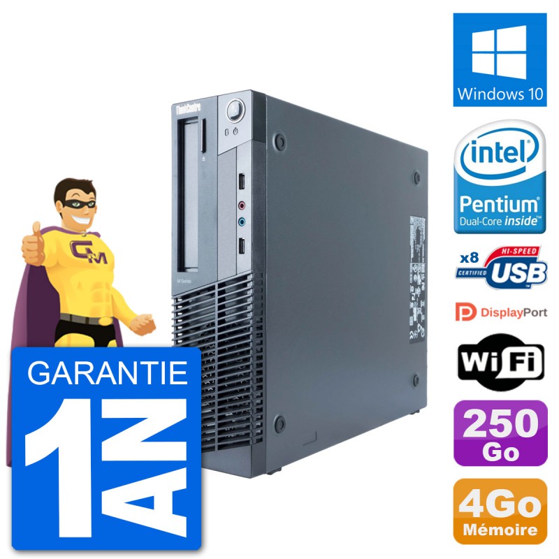 PC Lenovo ThinkCentre M91p SFF - Intel Pentium G630 2.7 Ghz (3 Mo) - 4 Go DDR3 - Disque Dur 3,5" 250 Go - Graveur DVD - Clef Wifi USB - Windows 10 - Garantie 1 an.