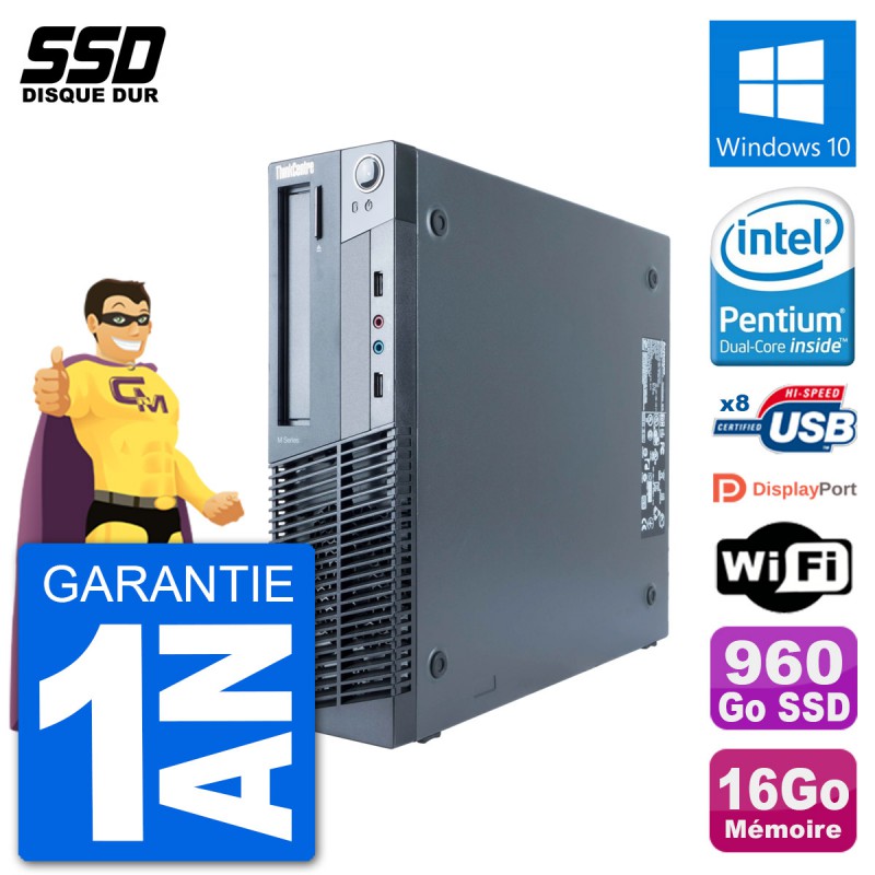 PC Lenovo ThinkCentre M91p SFF - Intel Pentium G630 2.7 Ghz (3 Mo) - 16 Go DDR3 - Disque Dur SSD 960 Go - Graveur DVD - Clef Wifi USB - Windows 10 - Garantie 1 an.