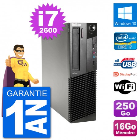 PC Lenovo ThinkCentre M91p SFF - Intel Core i7-2600 3.4 Ghz (8 Mo) - 16 Go DDR3 - Disque Dur 3,5" 250 Go - Graveur DVD - Clef Wifi USB - Windows 10 - Garantie 1 an.