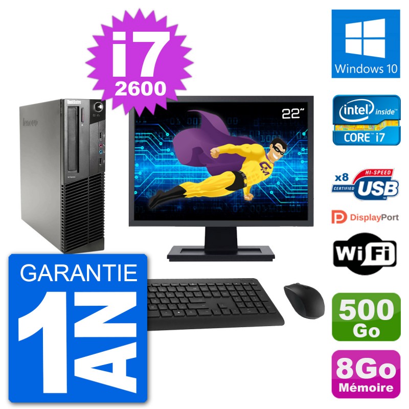 PC Lenovo M91p SFF - Intel Core i7-2600 3.4 Ghz (8 Mo) - 8 Go DDR3 - Disque Dur 3,5" 500 Go - Graveur DVD - Clef Wifi USB - Windows 10 - Livré avec Ecran 22" + clavier + souris (Marques et modèles variables) - Garantie 1 an.