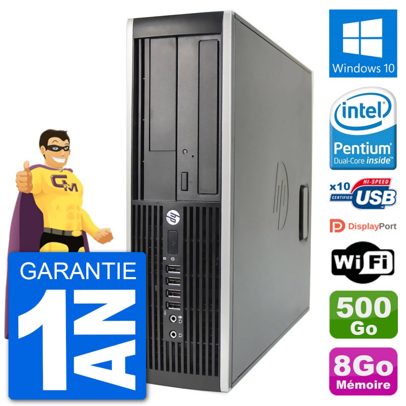 PC HP 8200 Elite SFF (Slim) - Intel Pentium Dual-Core G630 2.7 Ghz (3 Mo) - 8 Go DDR3 - Disque Dur 3,5" 500 Go - Graveur DVD - Clef Wifi USB - Windows 10 - Garantie 1 an.