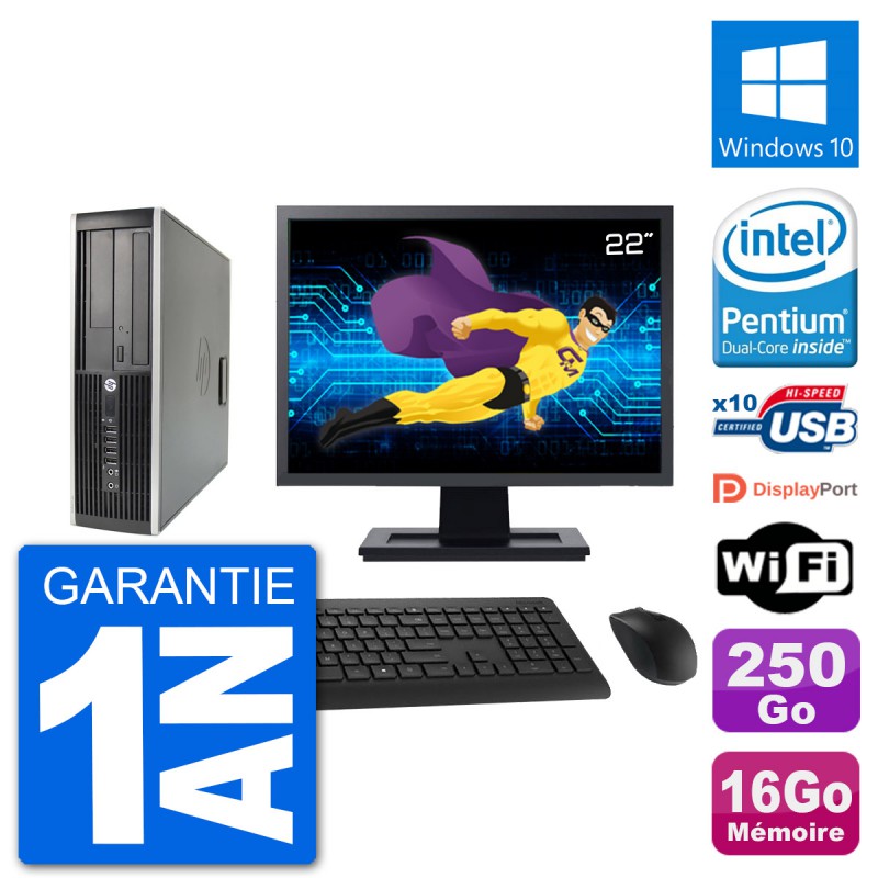 PC HP 8200 Elite SFF Ecran 22" Intel G630 RAM 16Go Disque 250Go Windows 10 Wifi