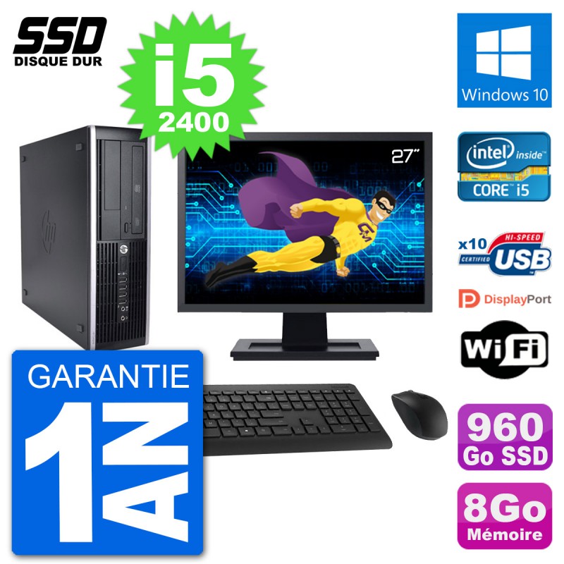 PC HP 8200 Elite SFF Ecran 27" Intel i5-2400 RAM 8Go SSD 960Go Windows 10 Wifi