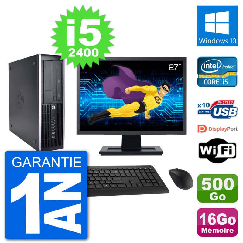 PC HP 8200 Elite SFF Ecran 27" Intel i5-2400 RAM 16Go Disque 500Go Windows 10 Wifi