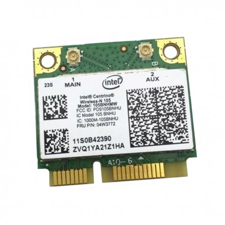 Carte Wifi Intel Centrino N 105 BNHU - Modèle 105BNHMW / G35663-005 - P/N PD9105BNHU / 04W3772 / 11200583 - Mini-PCI-Express - PC Portable - 300 Mbps - 802.11n - Compatible Lenovo Y400, Y500, Y410P, Y510P et U310 - Garantie 6 mois.
