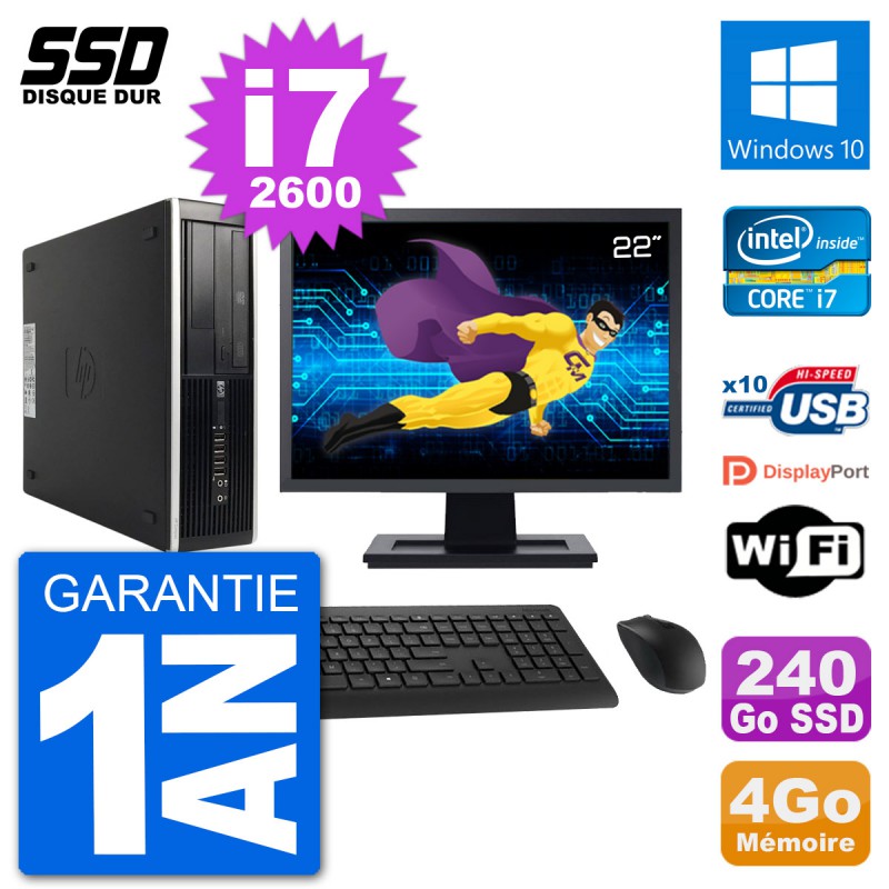 PC HP 8200 Elite SFF Ecran 22" Intel i7-2600 RAM 4Go SSD 240Go Windows 10 Wifi