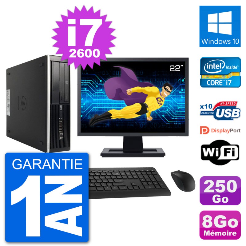 PC HP 8200 Elite SFF Ecran 22" Intel i7-2600 RAM 8Go Disque 250Go Windows 10 Wifi