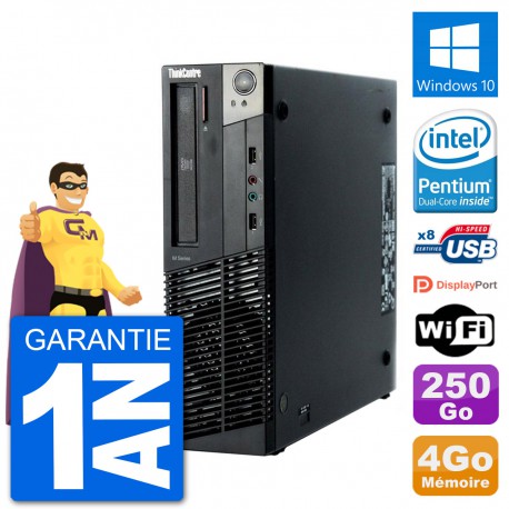 PC Lenovo ThinkCentre M92p SFF - Intel Pentium G630 2.7 Ghz (3 Mo) - 4 Go DDR3 - Disque Dur 3,5" 250 Go - Graveur DVD - Clef Wifi USB - Windows 10 - Garantie 1 an.