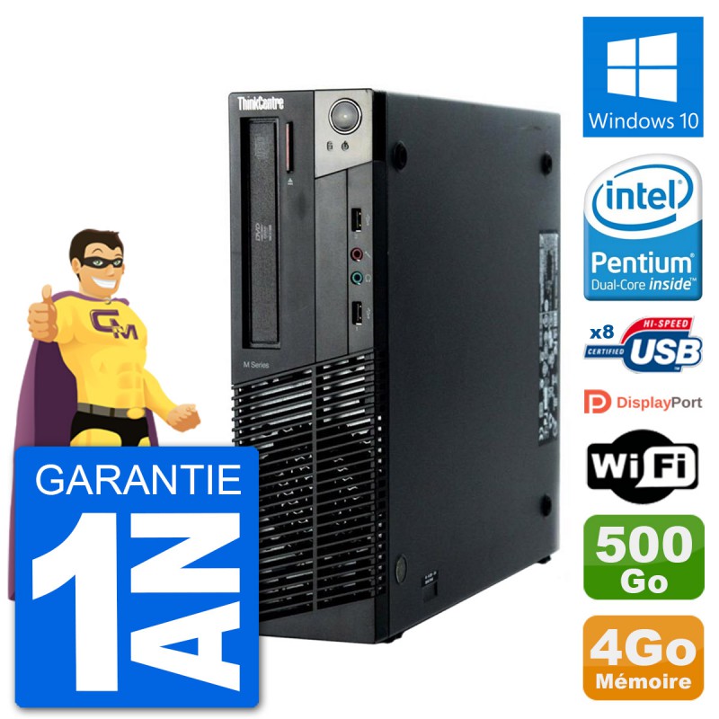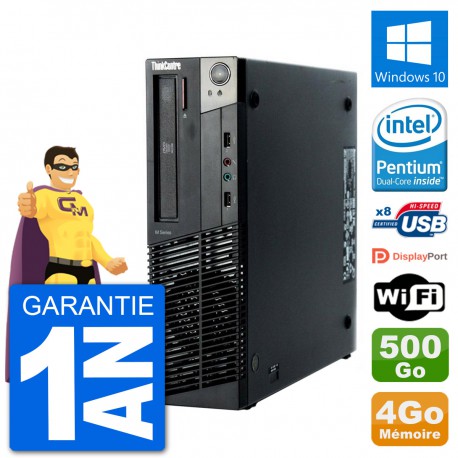 PC Lenovo ThinkCentre M92p SFF - Intel Pentium G630 2.7 Ghz (3 Mo) - 4 Go DDR3 - Disque Dur 3,5" 500 Go - Graveur DVD - Clef Wifi USB - Windows 10 - Garantie 1 an.