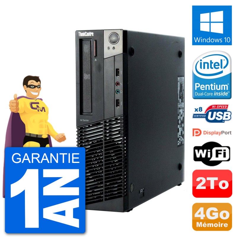 PC Lenovo ThinkCentre M92p SFF - Intel Pentium G630 2.7 Ghz (3 Mo) - 4 Go DDR3 - Disque Dur 3,5" 2 To - Graveur DVD - Clef Wifi USB - Windows 10 - Garantie 1 an.