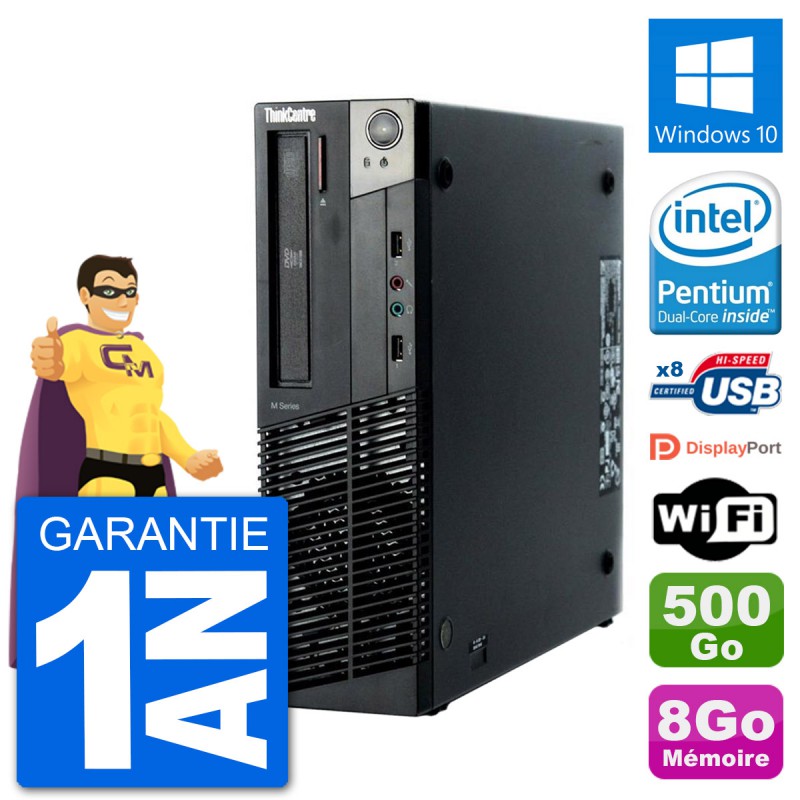 PC Lenovo ThinkCentre M92p SFF - Intel Pentium G630 2.7 Ghz (3 Mo) - 8 Go DDR3 - Disque Dur 3,5" 500 Go - Graveur DVD - Clef Wifi USB - Windows 10 - Garantie 1 an.