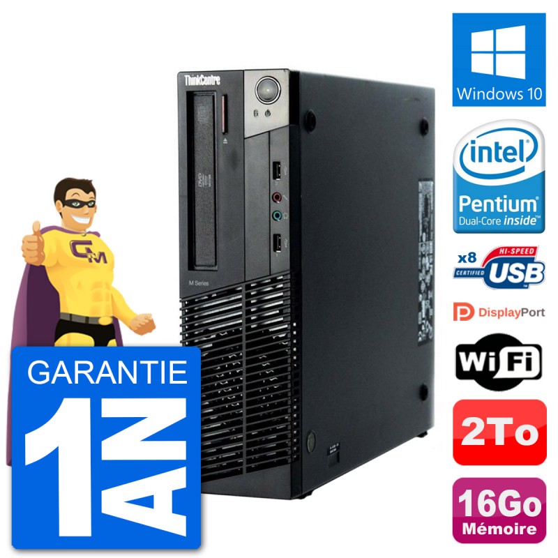 PC Lenovo ThinkCentre M92p SFF - Intel Pentium G630 2.7 Ghz (3 Mo) - 16 Go DDR3 - Disque Dur 3,5" 2 To - Graveur DVD - Clef Wifi USB - Windows 10 - Garantie 1 an.