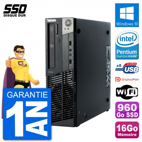 PC Lenovo ThinkCentre M92p SFF - Intel Pentium G630 2.7 Ghz (3 Mo) - 16 Go DDR3 - Disque Dur SSD 960 Go - Graveur DVD - Clef Wifi USB - Windows 10 - Garantie 1 an.
