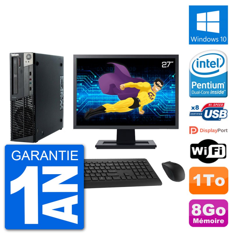 PC Lenovo M92p SFF - Intel Pentium G630 2.7 Ghz (3 Mo) - 8 Go DDR3 - Disque Dur 3,5" 1 To - Graveur DVD - Clef Wifi USB - Windows 10 - Livré avec Ecran 27" + clavier + souris (Marques et modèles variables) - Garantie 1 an.