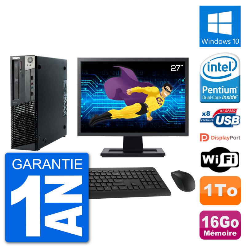 PC Lenovo M92p SFF - Intel Pentium G630 2.7 Ghz (3 Mo) - 16 Go DDR3 - Disque Dur 3,5" 1 To - Graveur DVD - Clef Wifi USB - Windows 10 - Livré avec Ecran 27" + clavier + souris (Marques et modèles variables) - Garantie 1 an.