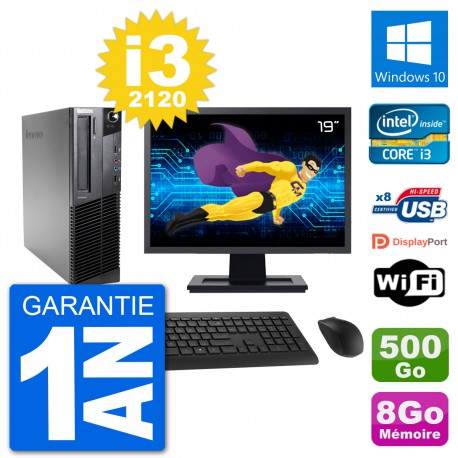 PC Lenovo M92p SFF - Intel Core i3-2120 3.3 Ghz (3 Mo) - 8 Go DDR3 - Disque Dur 3,5" 500 Go - Graveur DVD - Clef Wifi USB - Windows 10 - Livré avec Ecran 19" + clavier + souris (Marques et modèles variables) - Garantie 1 an.