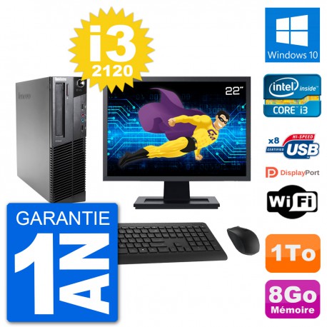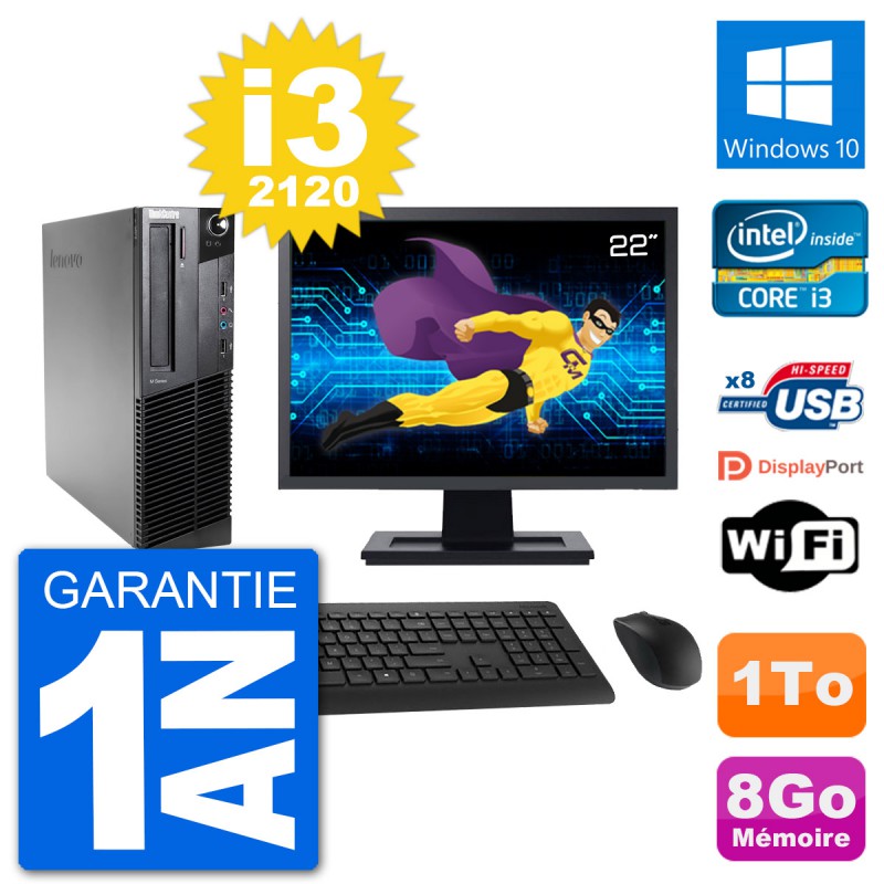 PC Lenovo M92p SFF - Intel Core i3-2120 3.3 Ghz (3 Mo) - 8 Go DDR3 - Disque Dur 3,5" 1 To - Graveur DVD - Clef Wifi USB - Windows 10 - Livré avec Ecran 22" + clavier + souris (Marques et modèles variables) - Garantie 1 an.