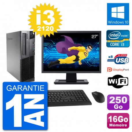 PC Lenovo M92p SFF - Intel Core i3-2120 3.3 Ghz (3 Mo) - 16 Go DDR3 - Disque Dur 3,5" 250 Go - Graveur DVD - Clef Wifi USB - Windows 10 - Livré avec Ecran 27" + clavier + souris (Marques et modèles variables) - Garantie 1 an.
