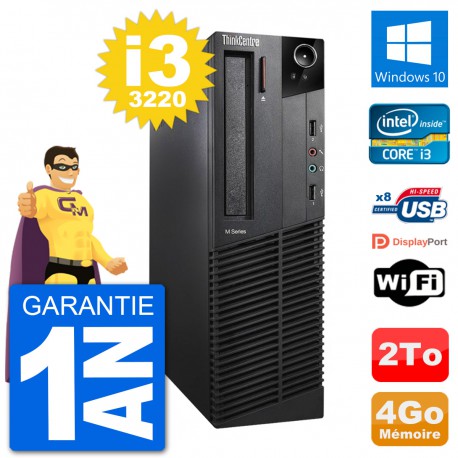 PC Lenovo ThinkCentre M92p SFF - Intel Core i3-3220 3.3 Ghz (3 Mo) - 4 Go DDR3 - Disque Dur 3,5" 2 To - Graveur DVD - Clef Wifi USB - Windows 10 - Garantie 1 an.