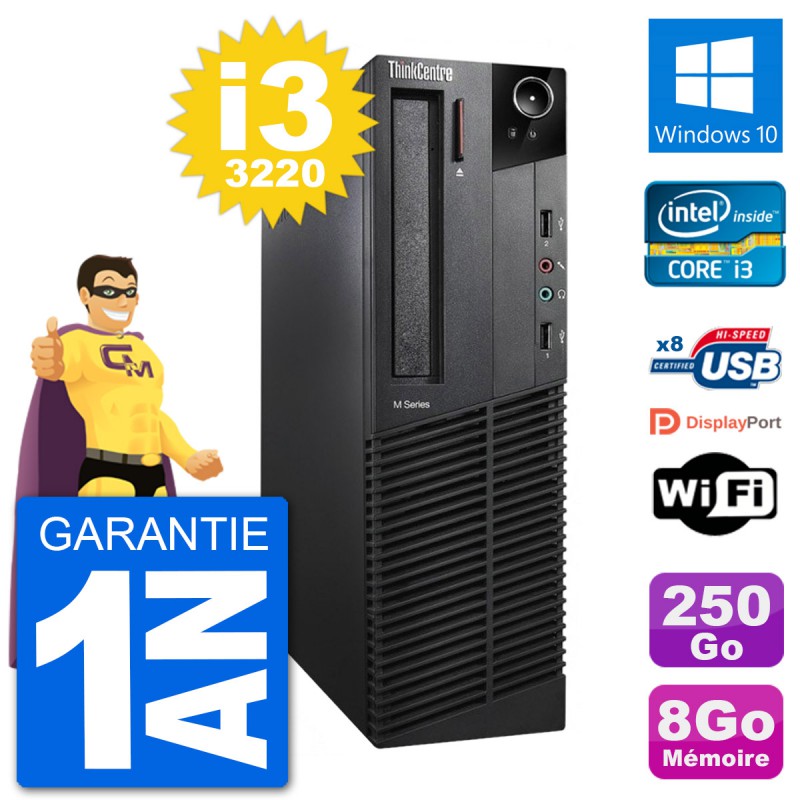 PC Lenovo ThinkCentre M92p SFF - Intel Core i3-3220 3.3 Ghz (3 Mo) - 8 Go DDR3 - Disque Dur 3,5" 250 Go - Graveur DVD - Clef Wifi USB - Windows 10 - Garantie 1 an.