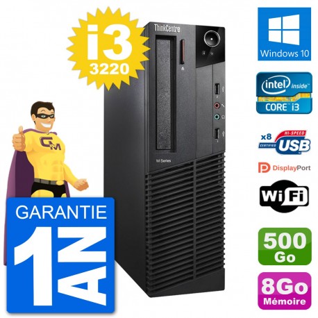 PC Lenovo ThinkCentre M92p SFF - Intel Core i3-3220 3.3 Ghz (3 Mo) - 8 Go DDR3 - Disque Dur 3,5" 500 Go - Graveur DVD - Clef Wifi USB - Windows 10 - Garantie 1 an.