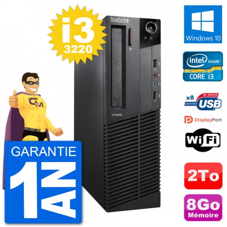 PC Lenovo ThinkCentre M92p SFF - Intel Core i3-3220 3.3 Ghz (3 Mo) - 8 Go DDR3 - Disque Dur 3,5" 2 To - Graveur DVD - Clef Wifi USB - Windows 10 - Garantie 1 an.
