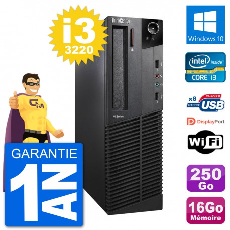 PC Lenovo ThinkCentre M92p SFF - Intel Core i3-3220 3.3 Ghz (3 Mo) - 16 Go DDR3 - Disque Dur 3,5" 250 Go - Graveur DVD - Clef Wifi USB - Windows 10 - Garantie 1 an.